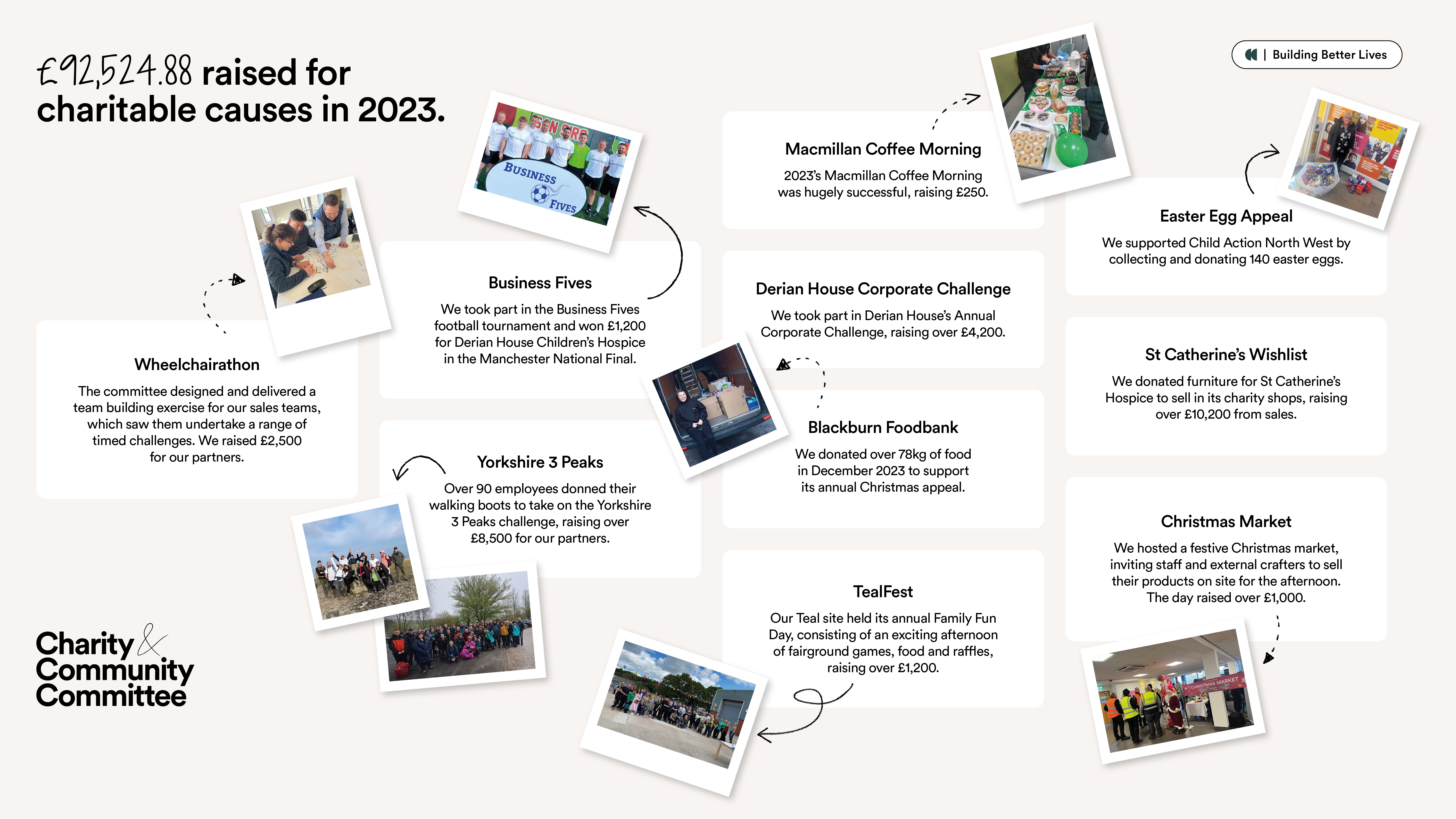 Through our combined efforts, we raised and donated a total of £92,524.88 for charitable organisations in 2023.