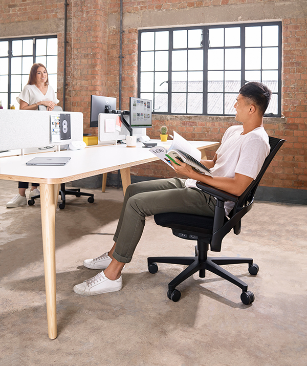 Utilising a new generation of synchronised tilt action, i-Workchair 2.0 mirrors the body’s natural pivot points, providing a seamless transition between upright and reclined postures.